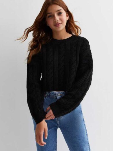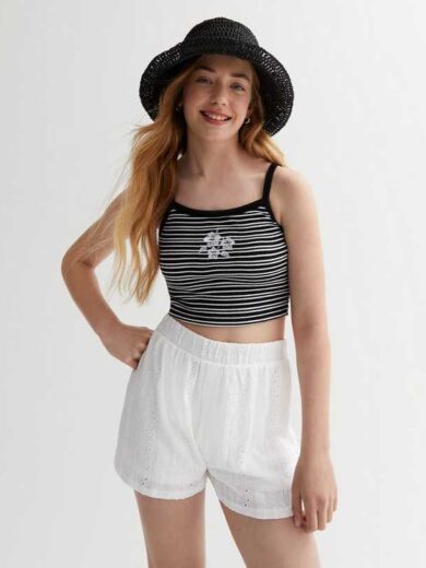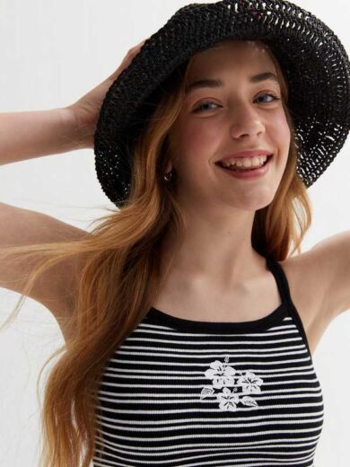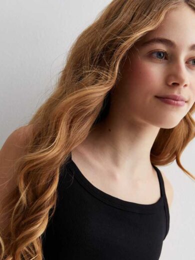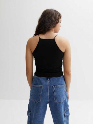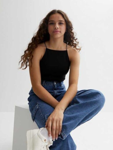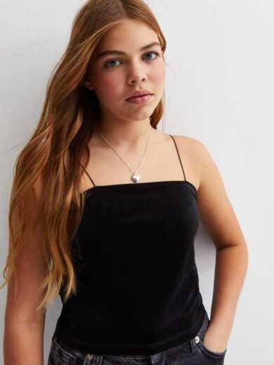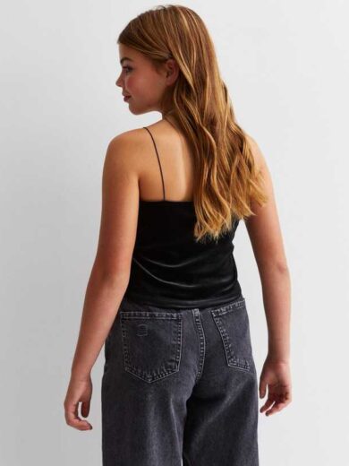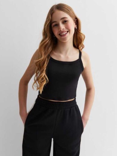 Girls Black Jersey Spaghetti Strap Square Neck Cami
