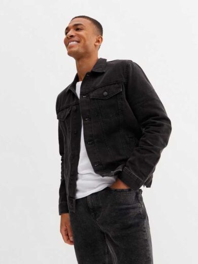 Black Denim Jersey Sleeve Hooded Jacket
