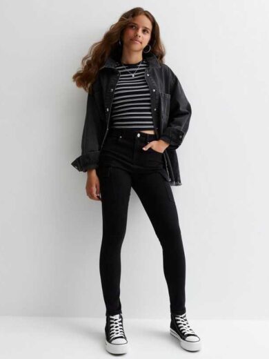 Girls Black High Waist Hallie Super Skinny Cargo Jeans