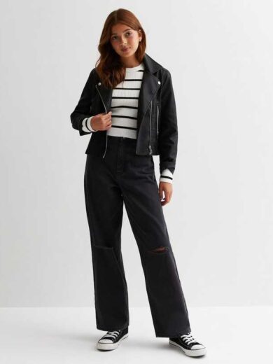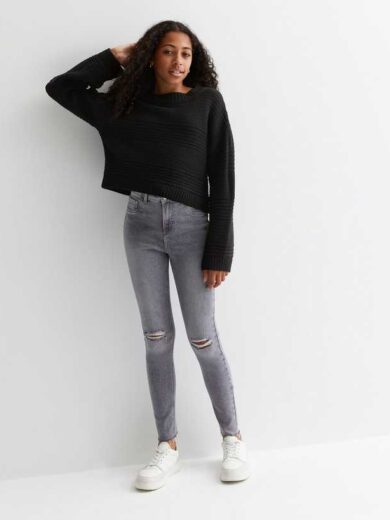 Girls Dark Grey High Waist Ripped Knee Hallie Super Skinny Jeans