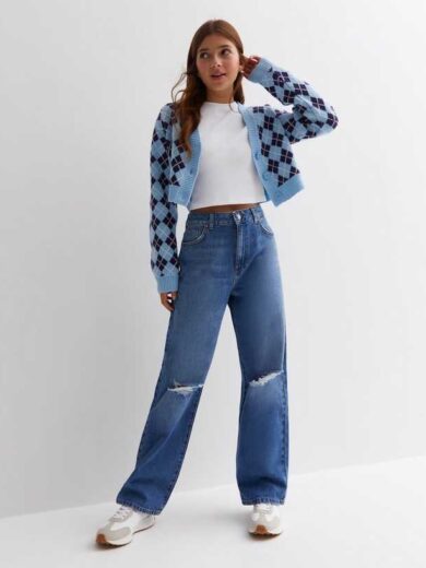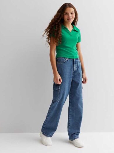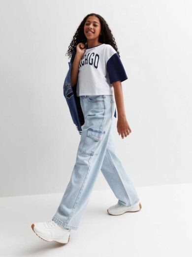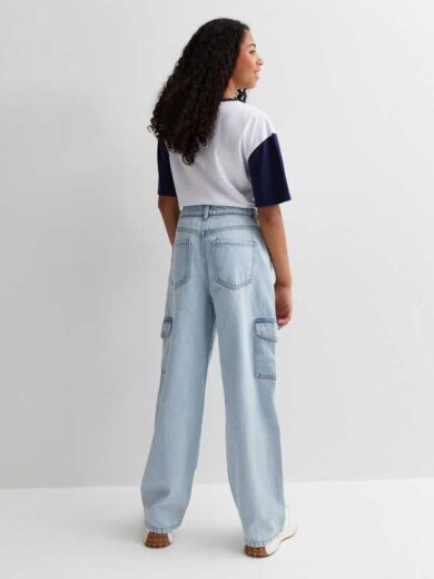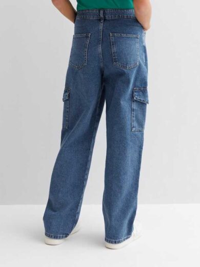 Girls Blue Cargo Pocket High Waist Sinead Baggy Fit Jeans