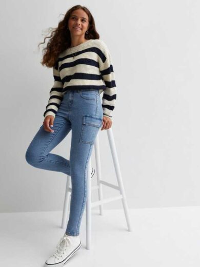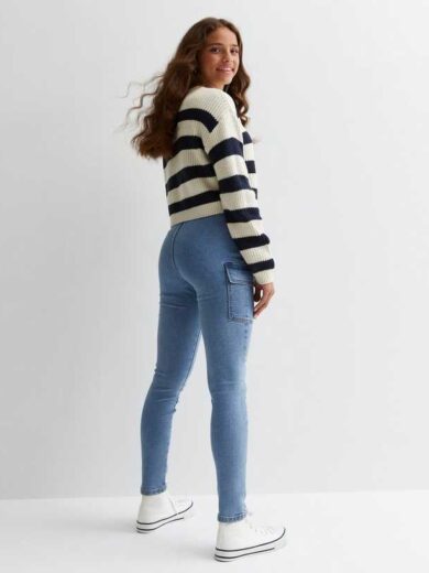 Girls Blue High Waist Hallie Super Skinny Cargo Jeans