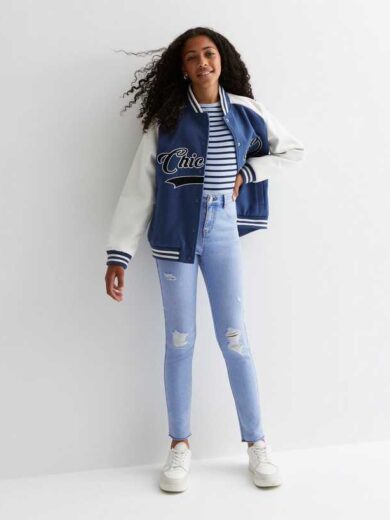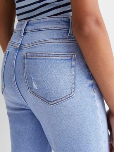 Girls Pale Blue High Waist Ripped Knee Hallie Super Skinny Jeans