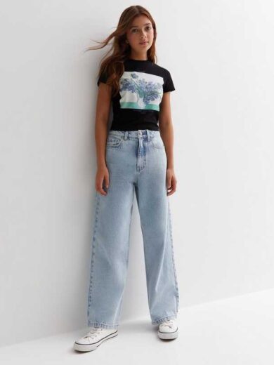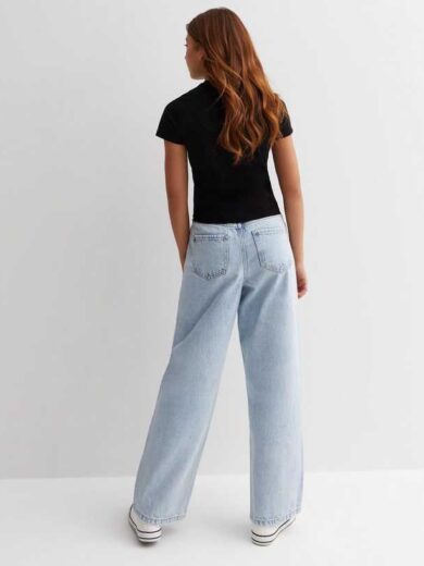 Girls Pale Blue High Waist Ronnie Wide Leg Jeans