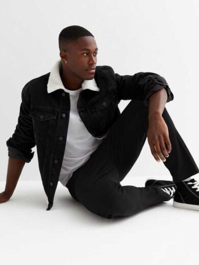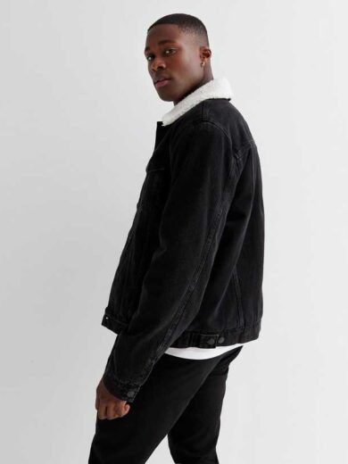 Black Denim Borg Collared Jacket