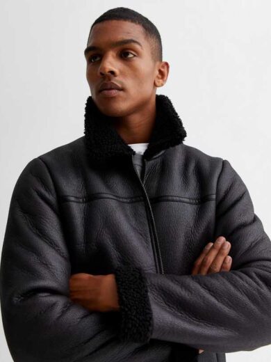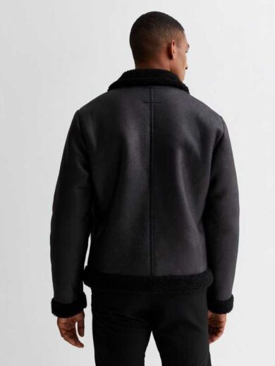 Black Faux Shearling Aviator Jacket