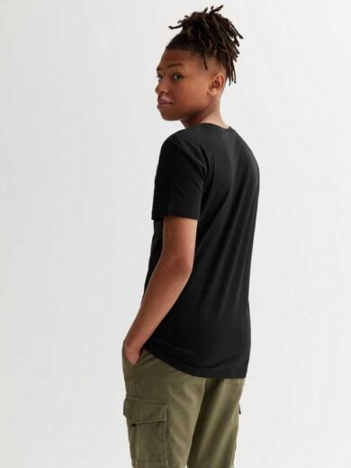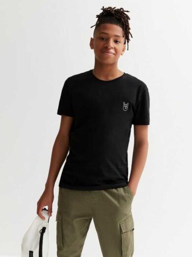 Boys Black Smile Embroidered T-Shirt