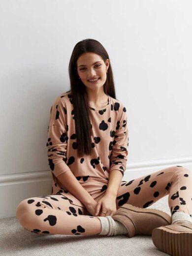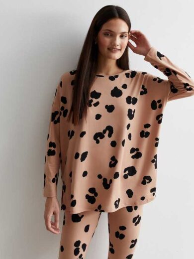 Brown Legging Pyjama Set with Leopard Print