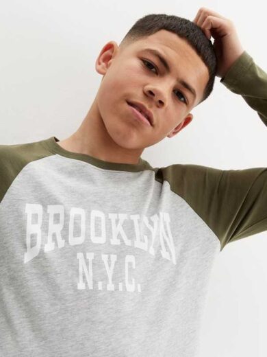 KIDS ONLY Pale Grey Brooklyn Logo Raglan T-Shirt