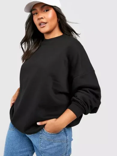 BLACK RECYCLED PLUS BASIC OVERSIZED SWEATSHIRT