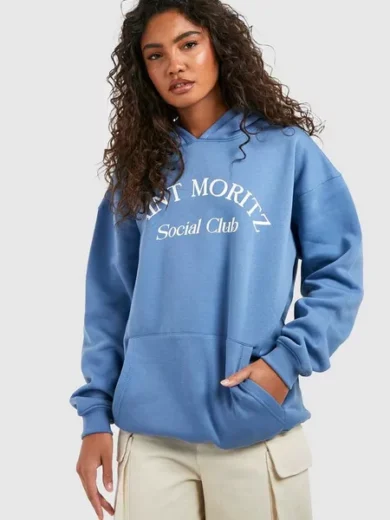 BLUE TALL SAINT MORITZ SLOGAN HOODIE