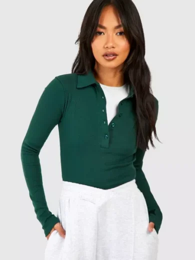 BASIC RIB COLLARED BUTTON BODYSUIT
