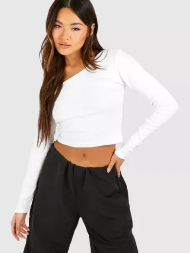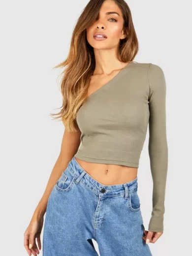 BASIC RIB ASYMMETRIC LONG SLEEVE TOP