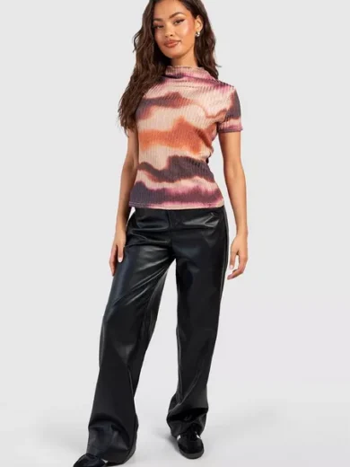 ABSTRACT KNITTED RIB FUNNEL NECK TOP