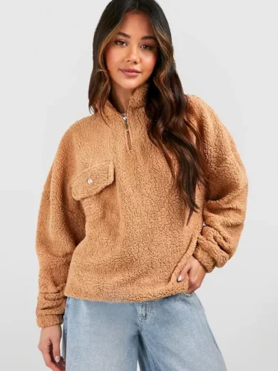 BORG POCKET DETAIL HALF ZIP SWEATSHIRT