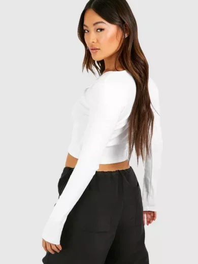 BASIC RIB BOAT NECK CUT OUT CROP TOP