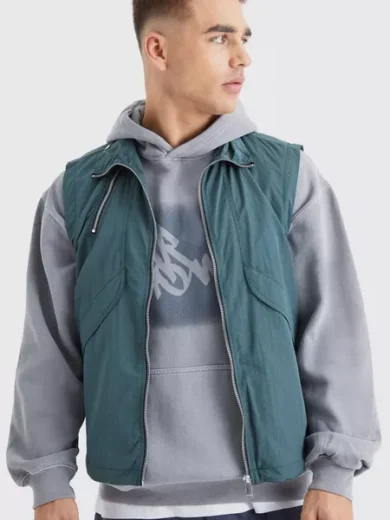 NYLON ZIP DETAIL UTILITY VEST