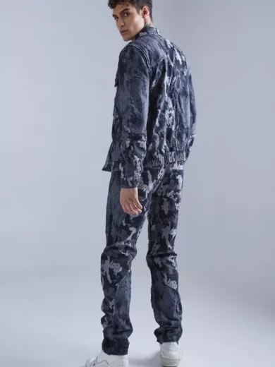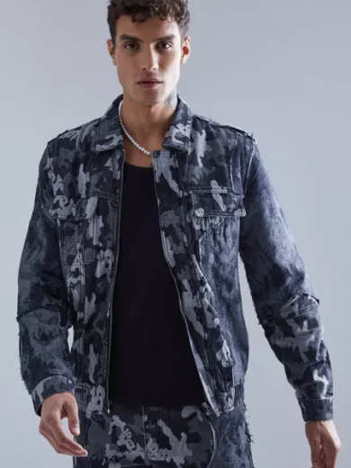 REGULAR FIT SPLICED CAMO DENIM JACKET