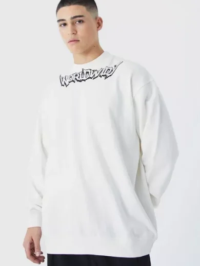 OVERSIZED EXTENDED NECK VARSITY APPLIQUE SWEATSHIRT