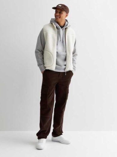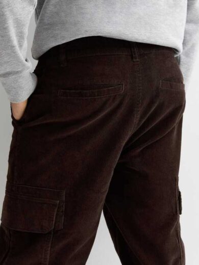 Dark Brown Cord Relaxed Fit Cargo Trousers