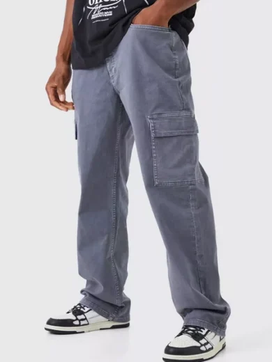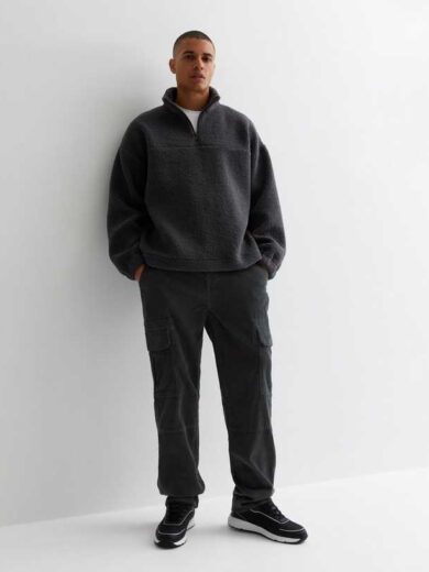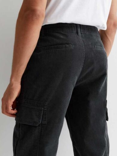 Dark Grey Cord Relaxed Fit Cargo Trousers