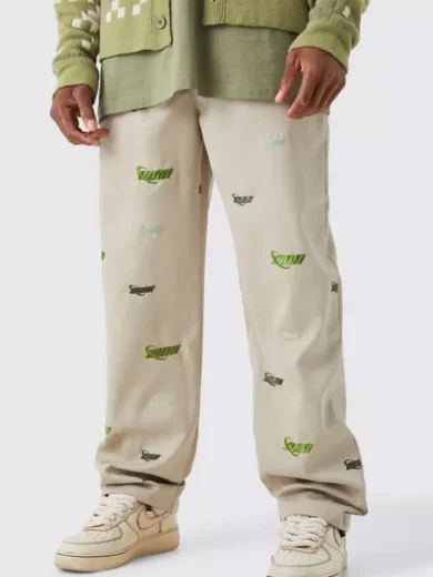 FIXED WAIST RELAXED ALL OVER EMBROIDERY TROUSER