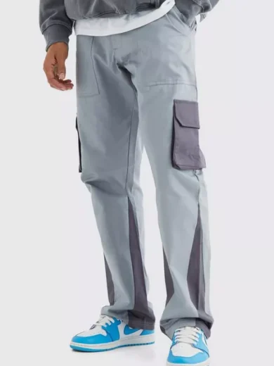 SLIM FIT COLOUR BLOCK CARGO TROUSER WITH WOVEN TAB