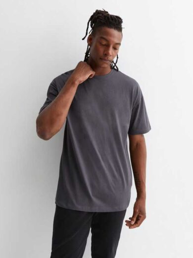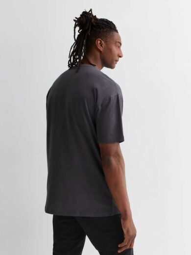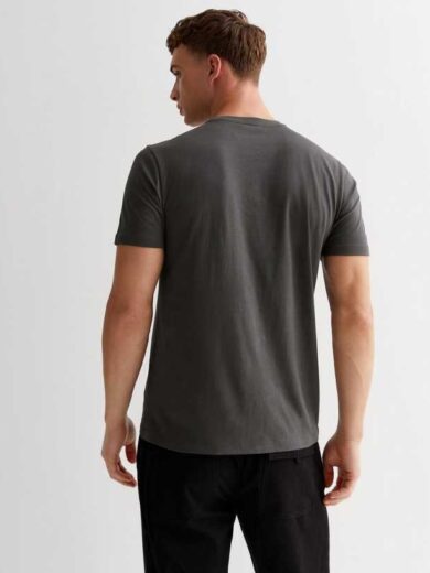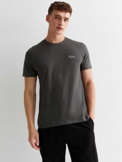 Dark Grey Cotton Embroidered Mountain Logo T-Shirt