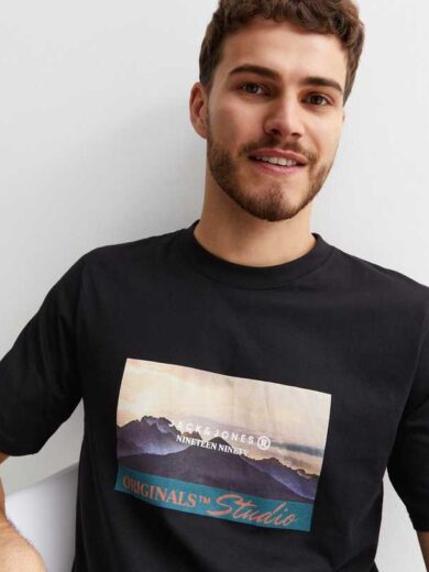 Jack & Jones Black Cotton Photographic Logo T-Shirt