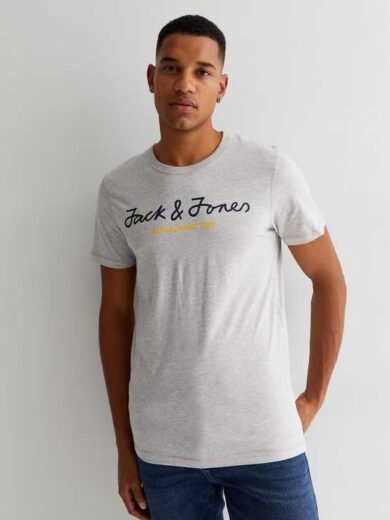 Jack & Jones Pale Grey Logo Crew T-Shirt