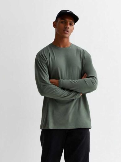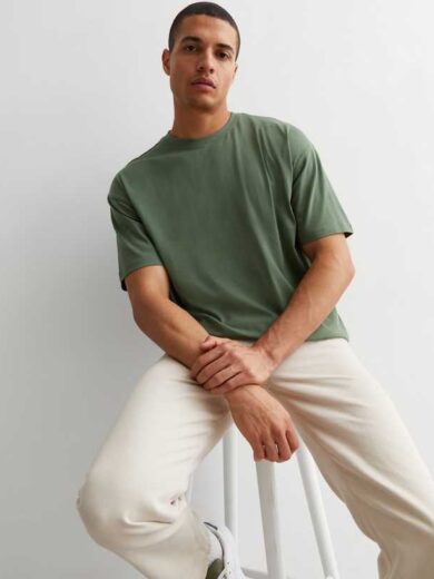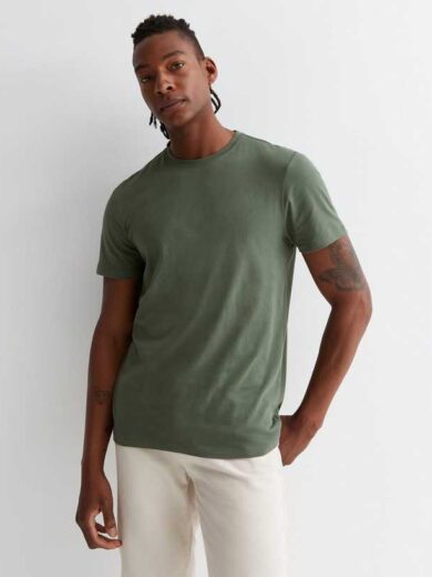 Khaki Cotton Crew Neck Regular Fit T-Shirt