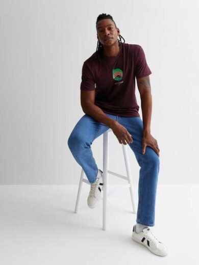 Only & Sons Burgundy Cotton Mountain Logo T-Shirt