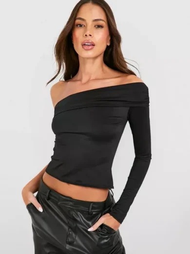 PREMIUM MATT SLINKY ONE SHOULDER ASYM TOP