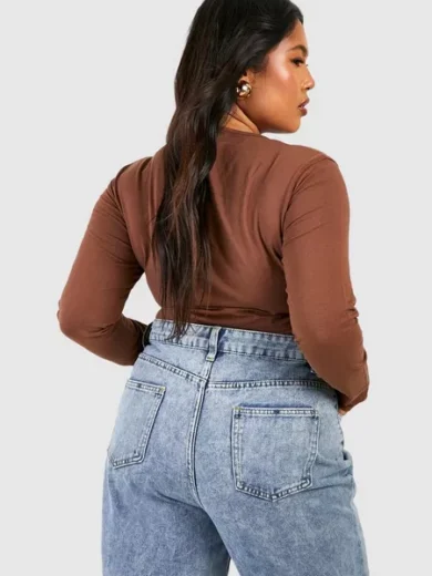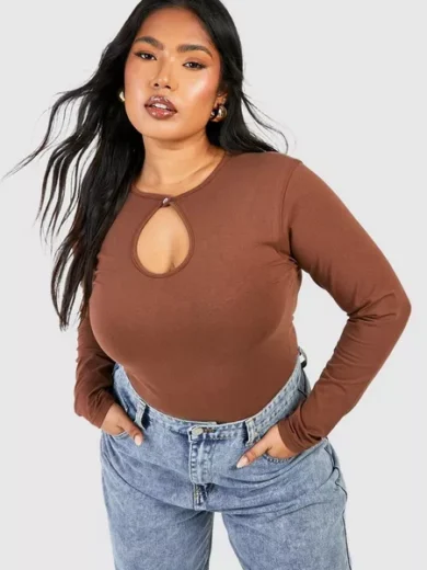 PLUS COTTON KEYHOLE LONG SLEEVE TOP
