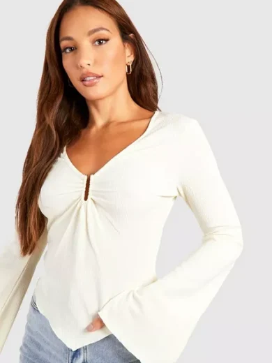 BASIC RIB ASYMMETRIC LONG SLEEVE TOP