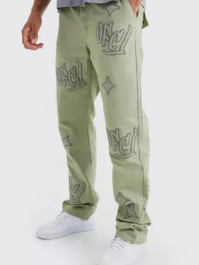 TALL FIXED WAIST RELAXED GUSSET APPLIQUE TROUSER